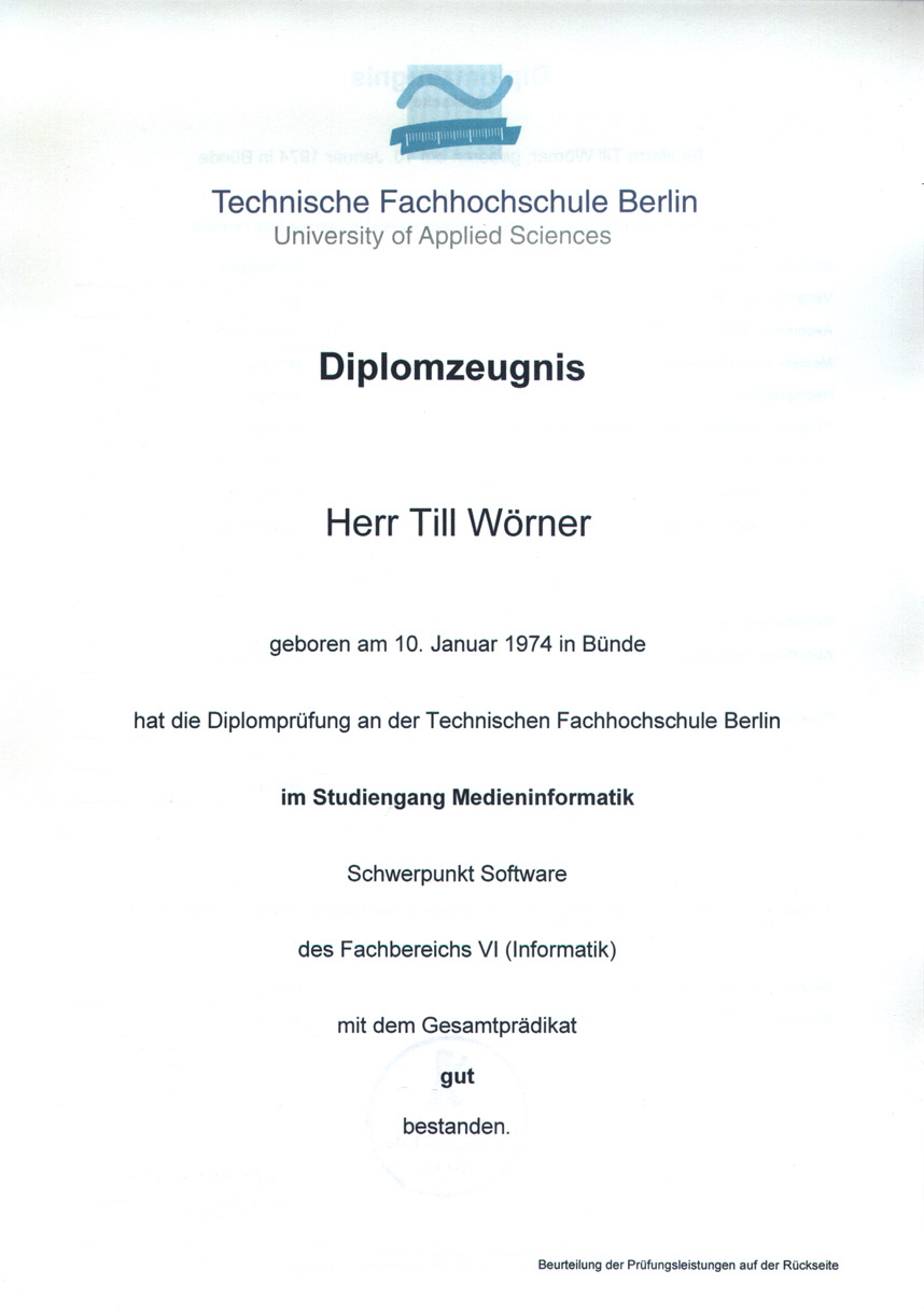 | Diplom-Zeugnis TFH Berlin Größe: 87kb |